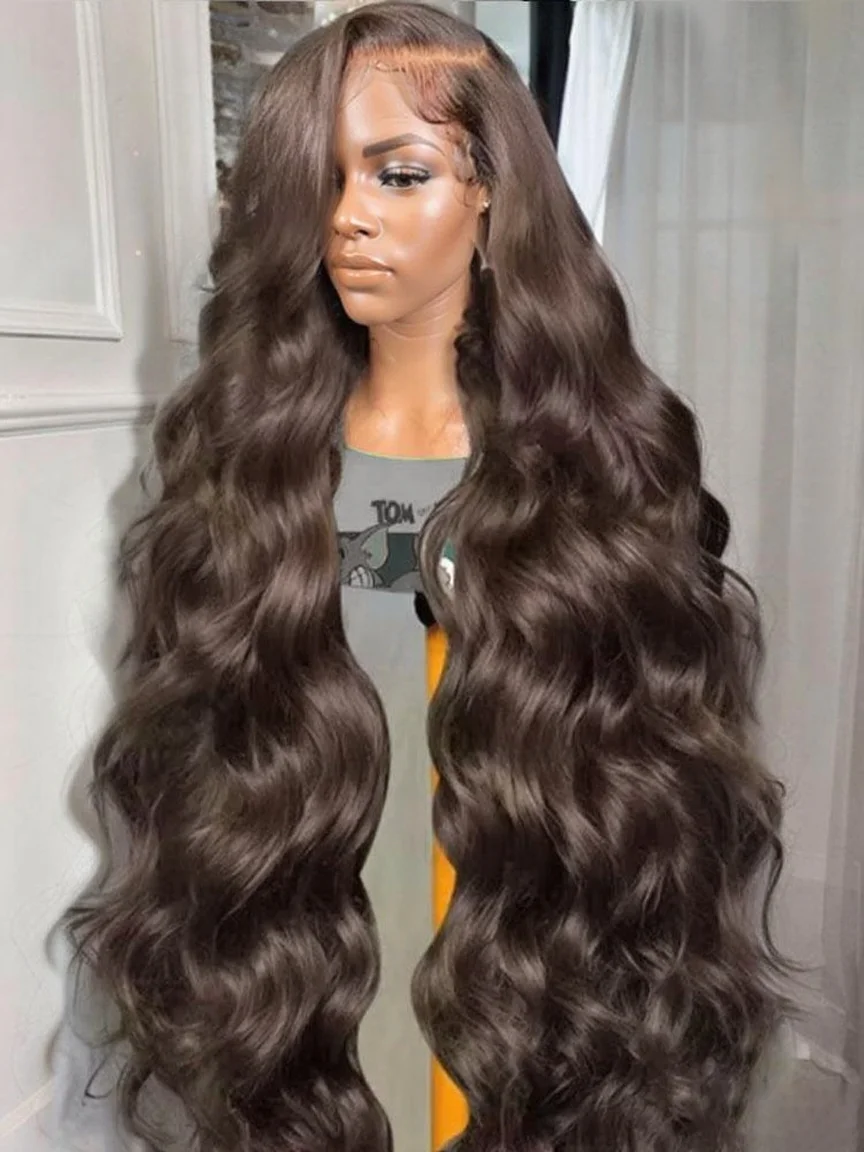 13x4 Chocolate Brown Body Wave HD Lace Front Wig Transparent Lace Frontal With Baby Hair Preplucked Colored Human Hair Wigs 180% $65.96