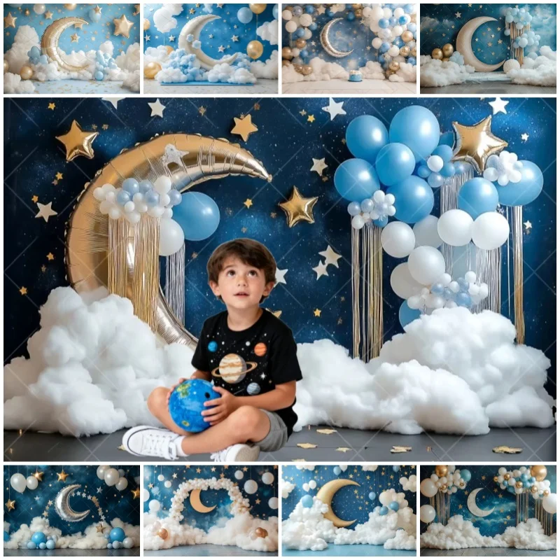 Baby Newborn 1st Birthday Backgrounds Photography Balloon Blue Wall Moon Photozone Backdrop Children Studio Photobooth Props $2.88