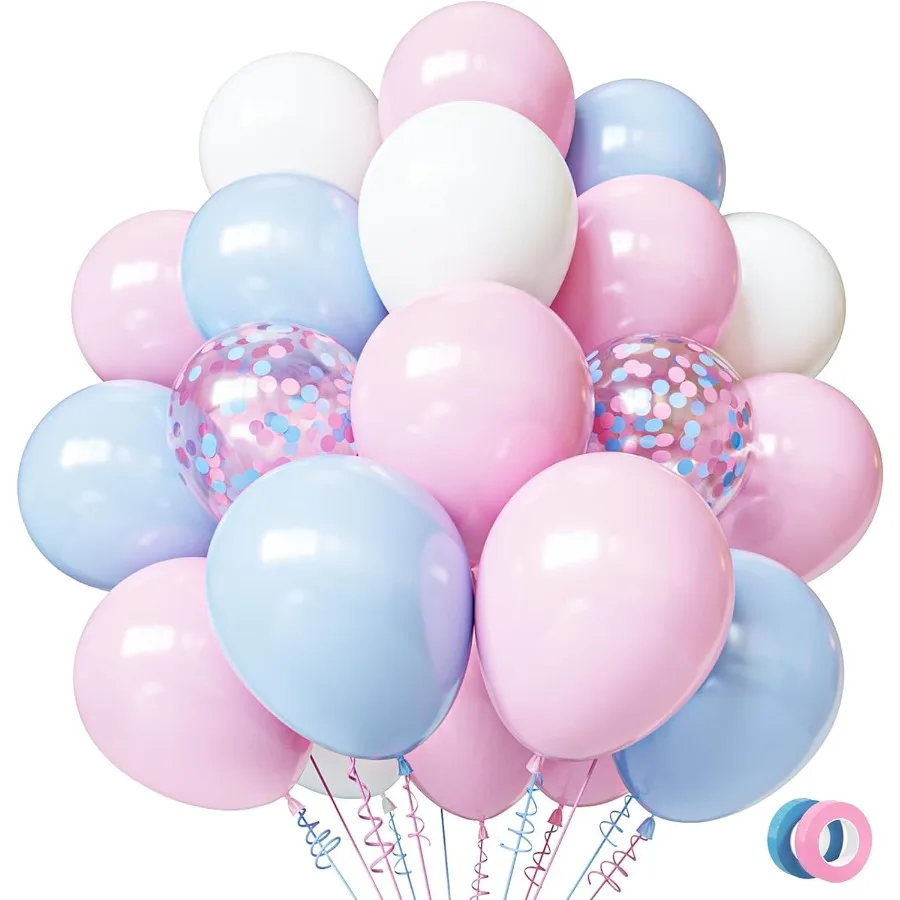 Pink and Blue Balloons 50pcs 12 inch Pink White Blue Balloons with 65ft Ribbon for Gender Reveal Baby Shower Birthday Bridal Sh $10.98
