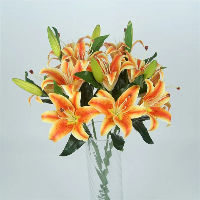 5Pcs Fake Latex Lily Flower Branch Three Heads Real Touch Lily for Wedding Home Decorative Artificial Flowers $22.87