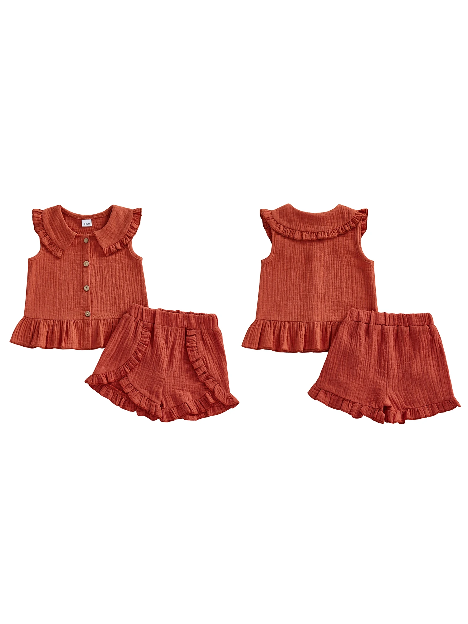 Adorable Baby Girl Summer Clothes Set with Cute Pleated Doll Collar Tank Top and Elastic Waist Shorts - 2 Piece Outfit $12.17