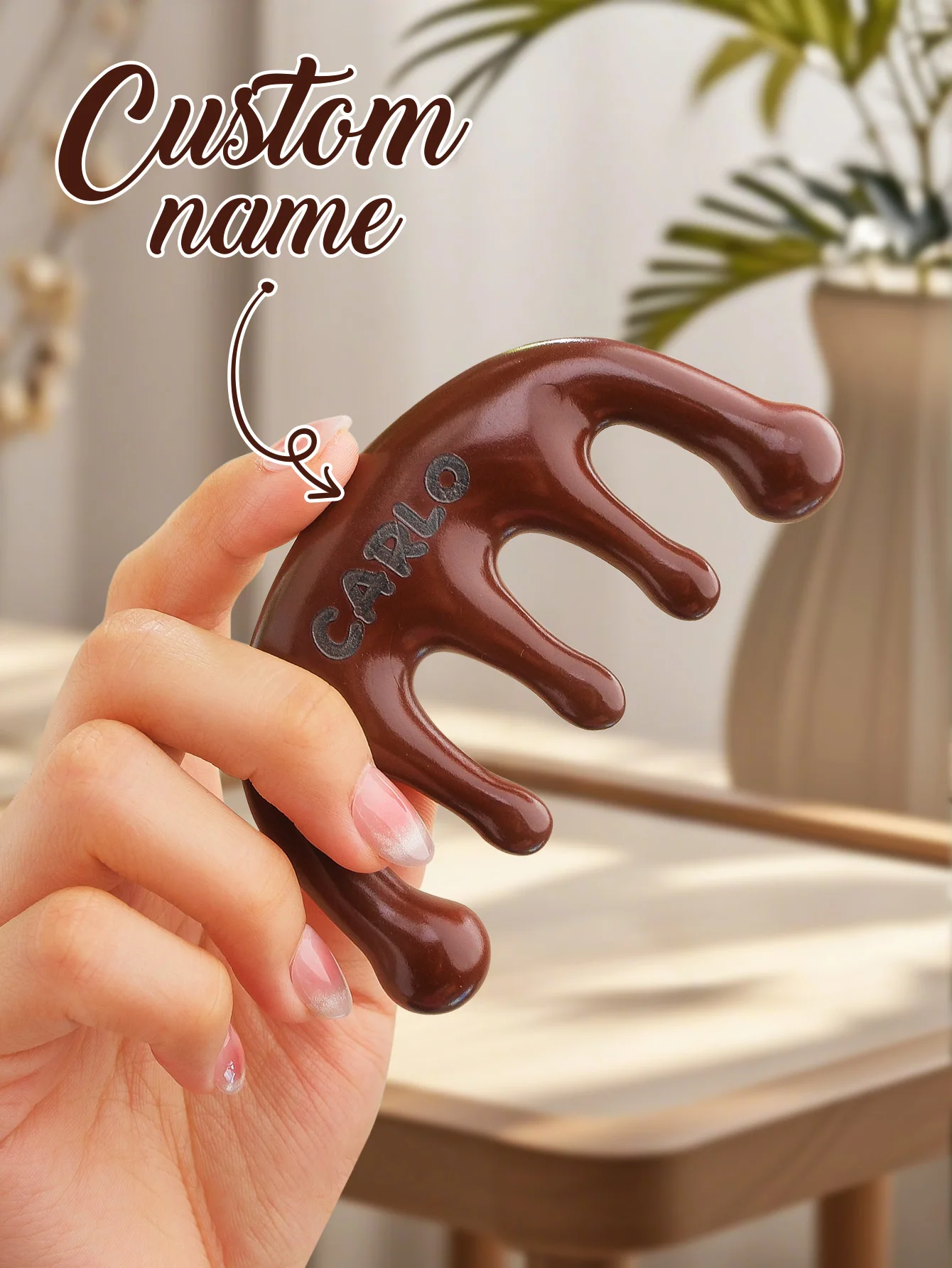 Custom Name Wooden Massage Comb Personalized Scalp Massager Five Claw Comb Hair Detangling Brush Gift For Women Mom Girlfriend $4.36