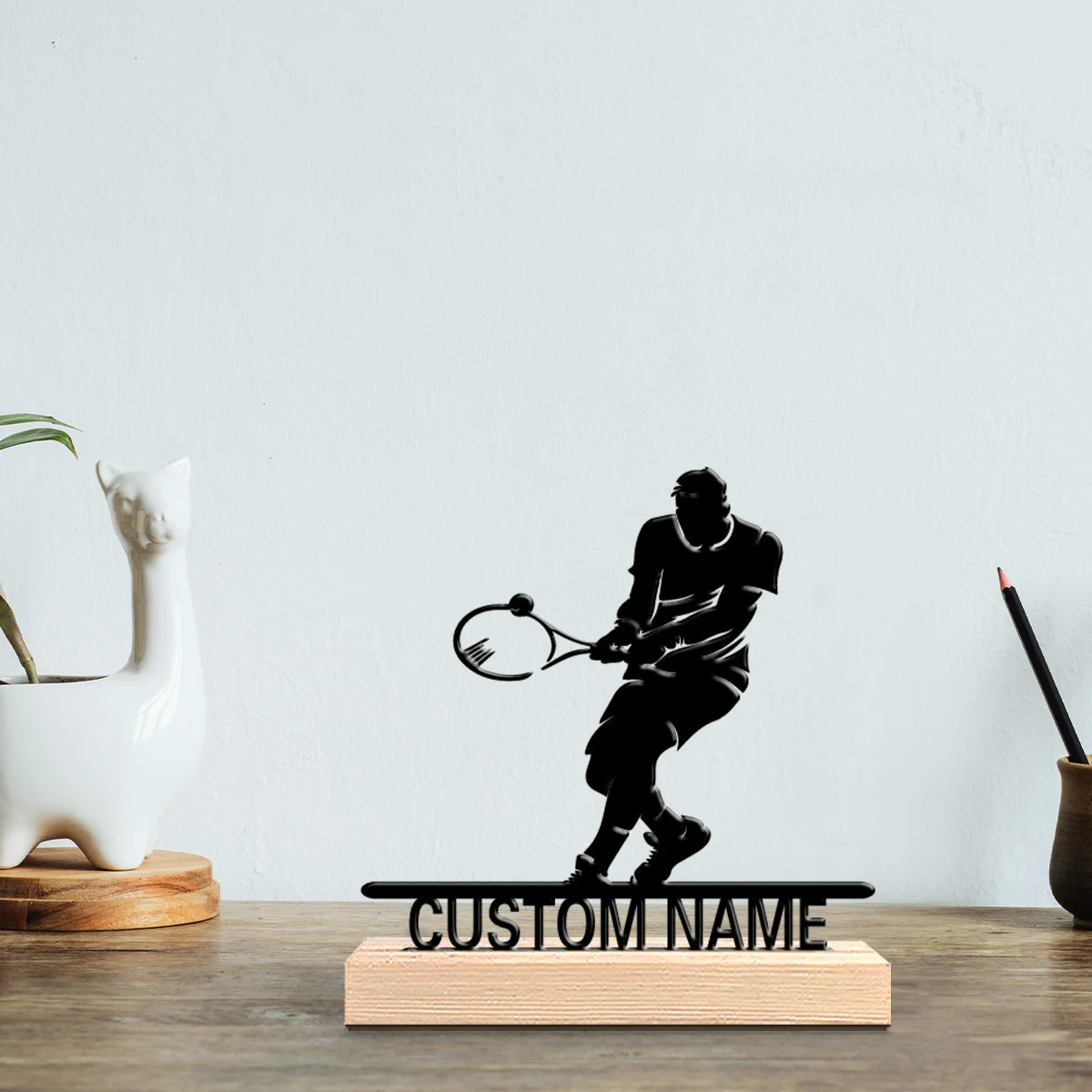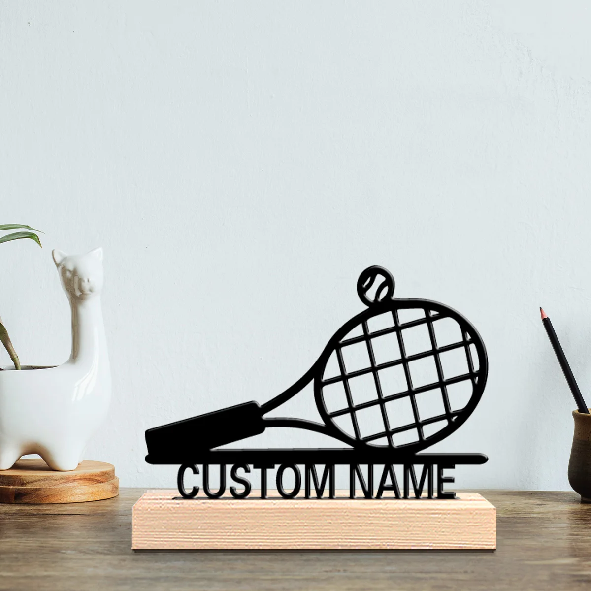 1pc Romantic Personalized Custom Tennis Metal Statues Delicate Wooden Base Decor for Bedrooms Weddings Bohemian Nature-Inspired $10.62