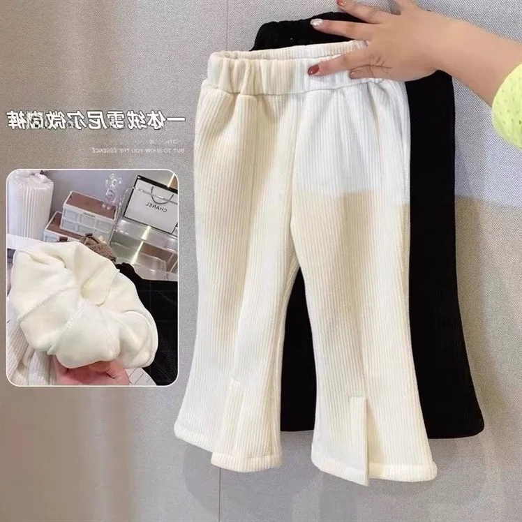 Girls Fce Lined Casual Pants Baby Girls Bootcut Trousers Autumn Winter Faionable Long Pants for Kids $18.11