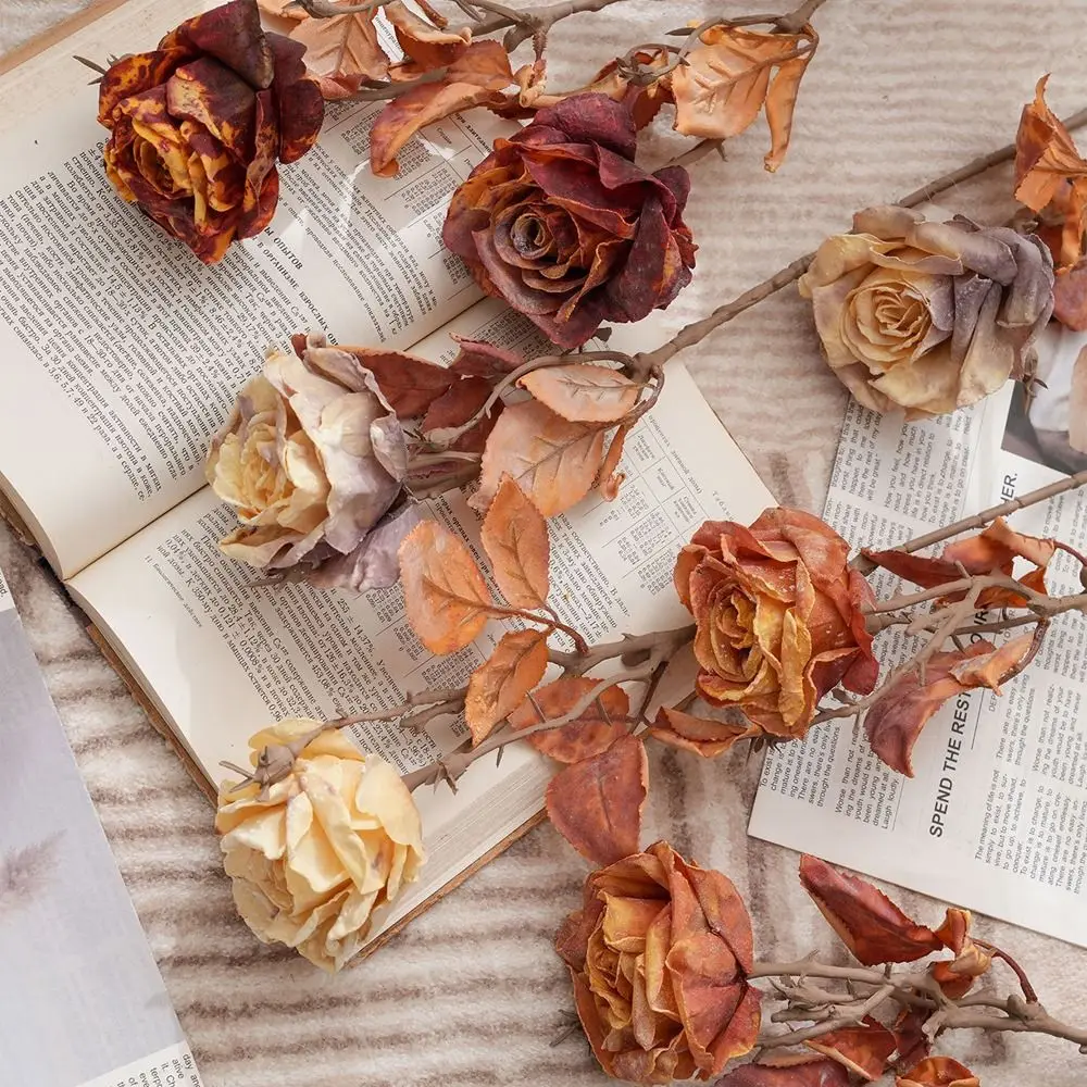 Retro Artificial Rose Branch Plastic Luxury Fake Flowers Lifelike Handmade Artificial Greenery Home Living Room Decor $1.98