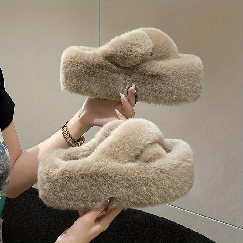 Women's Thick-Soled Slip-On Slippers - Beige Indoor Home Shoes, Non-Slip TPU Sole Suitable for Cold Floors, Soft Cushioned $27.21