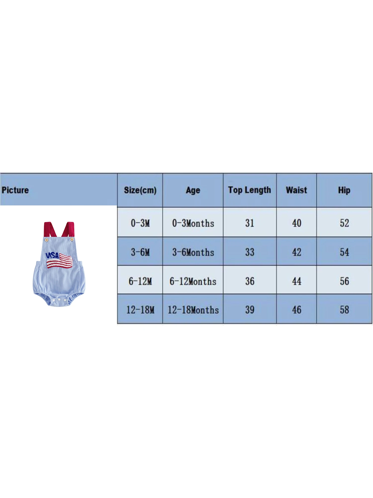 Independence Day Stars and Stripes Romper for Infants American Flag Embroidered Overalls Sleeveless Jumpsuit for Baby Boys $13.54