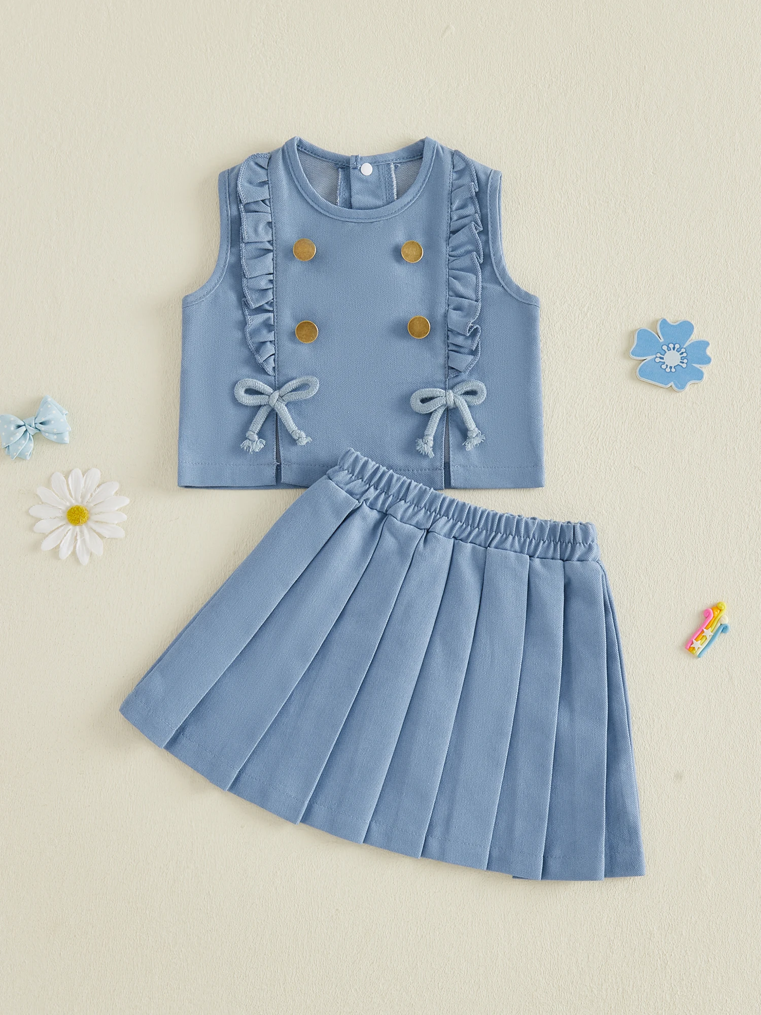 Adorable Toddler Girls Summer Outfits Sleeveless Bow Front Tank Tops with Matching Pleated Skirt Set - Cute Baby Clothes for $16.93