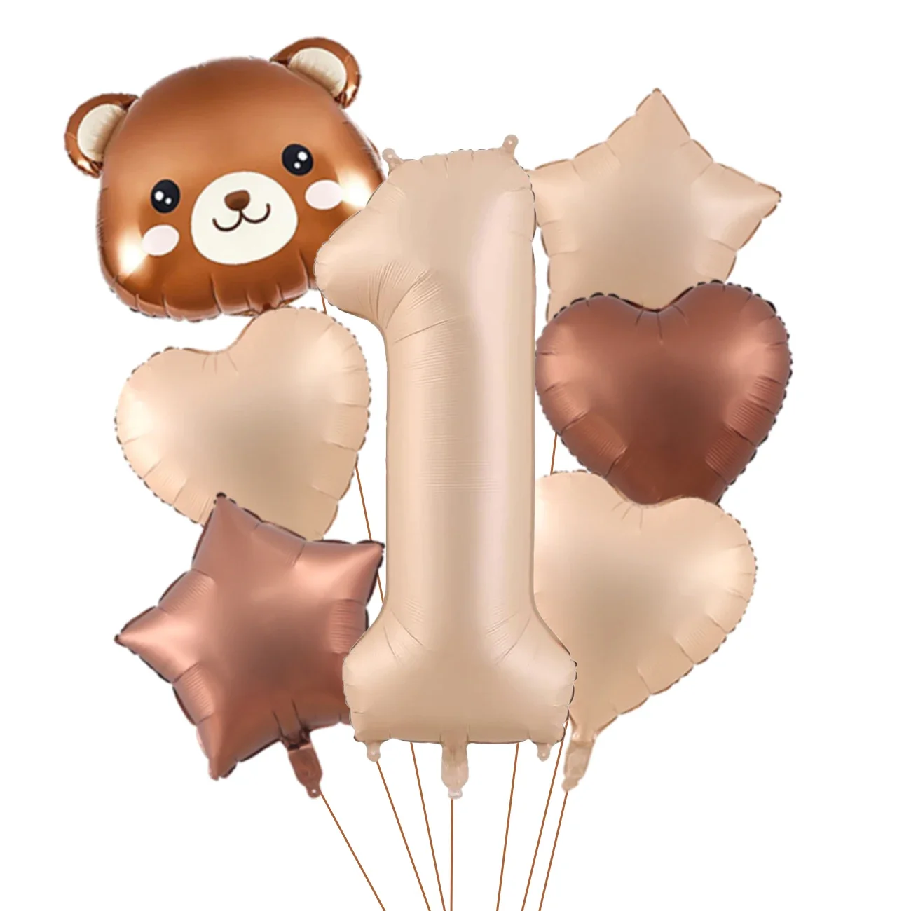 7pcs Brown Bear Balloon Set 40 Inch Caramel Number 1-9 Aluminum Foil Balloon Birthday Party Decoration Baby Shower Supplies $6.28