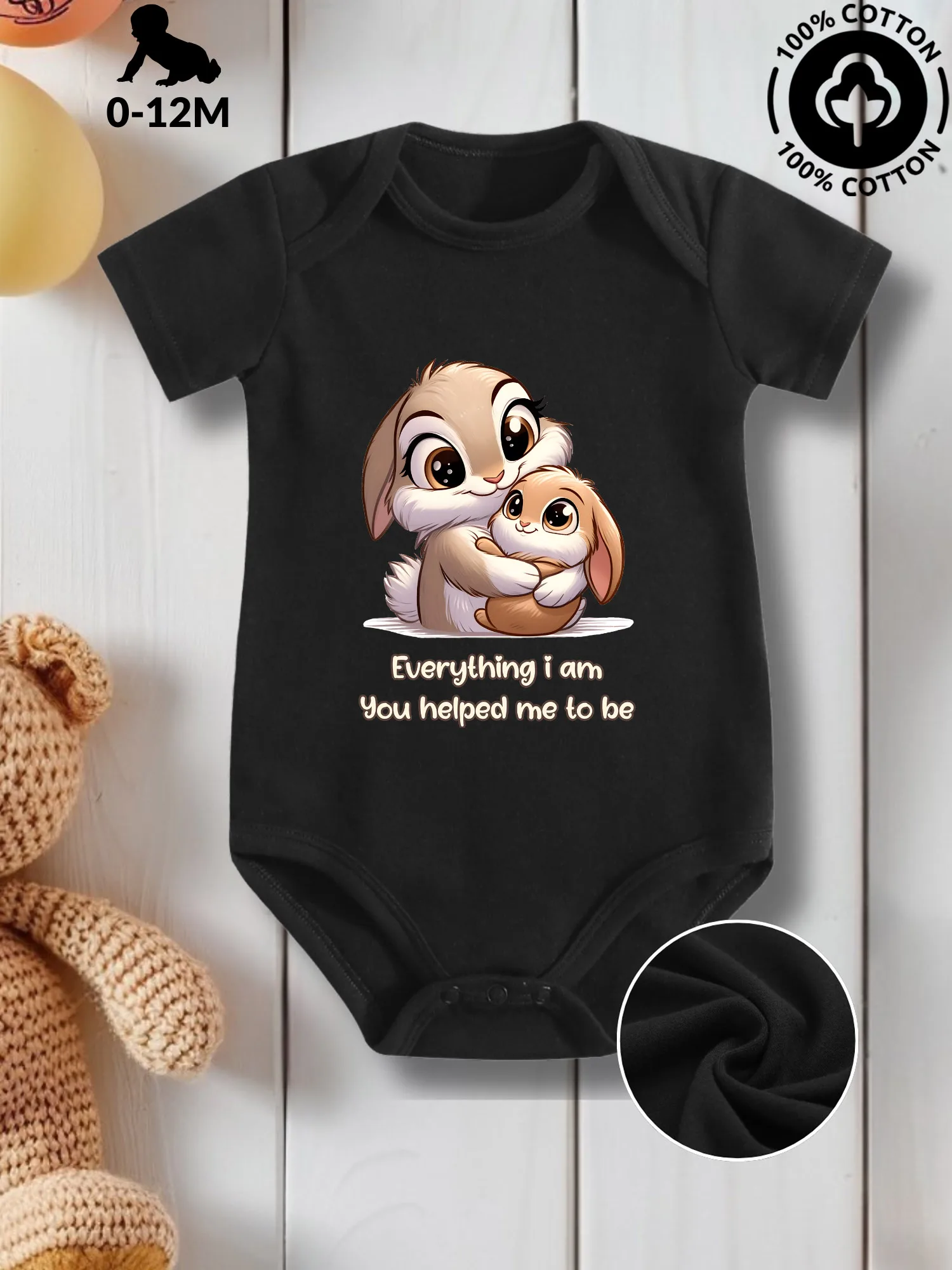Parent-Child Cute Animal Unisex Baby Crawling Suit, Pure Cotton Skin Care Onesie, All-Season Wear Black Bodysuit 190GSM $6.38