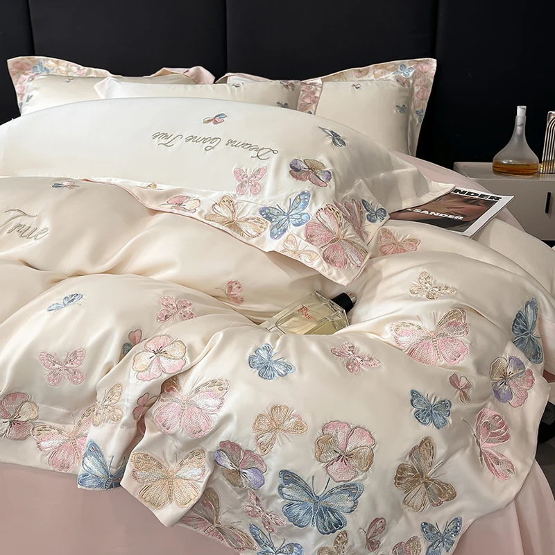 4pcs Class A Mother and Baby Grade Ice Silk Naked Sleeping Cool Plant Flower Duvet Cover 200x230 220x240 Bedding Summer $89.74