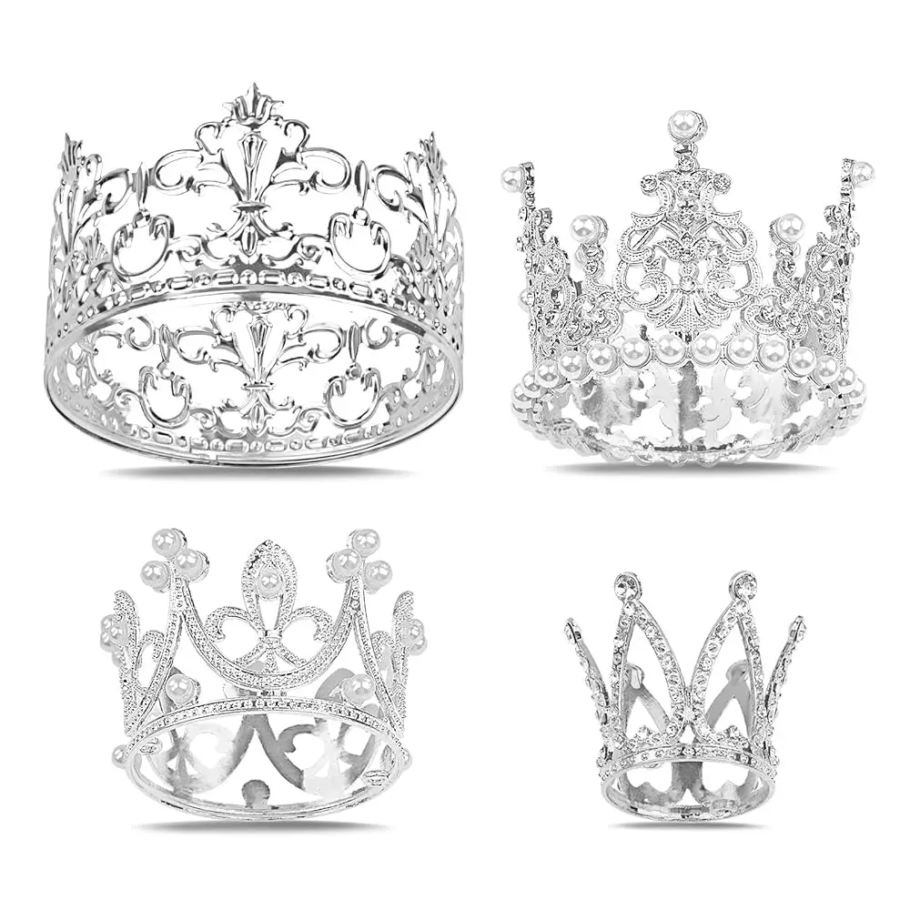 4 PCS Crown Cake Topper, Sliver Mini Crown Flower Arrangements Bouquet, Crystal Pearl Vintage Tiara Small Baby Princess Crown $22.81