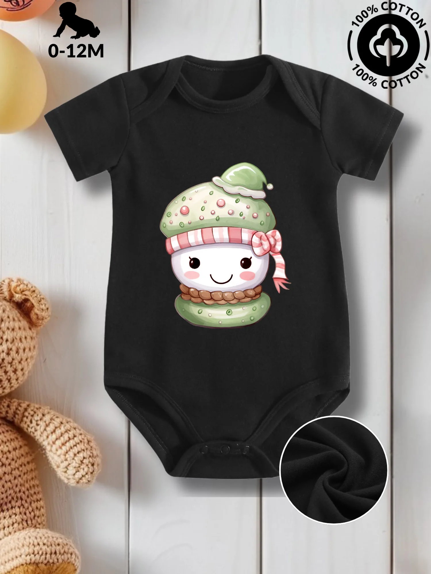 Lovely Macaron 05 Unisex Baby Crawling Suit, Pure Cotton Skin Care Onesie, All-Season Wear Black Bodysuit 190GSM $6.38
