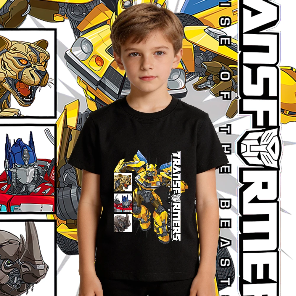Transformers Bumblebee & Maximals Assemble Print Cotton T Shirt Boys Girls Kids Casual Summer Short Sleeve Top $9.74