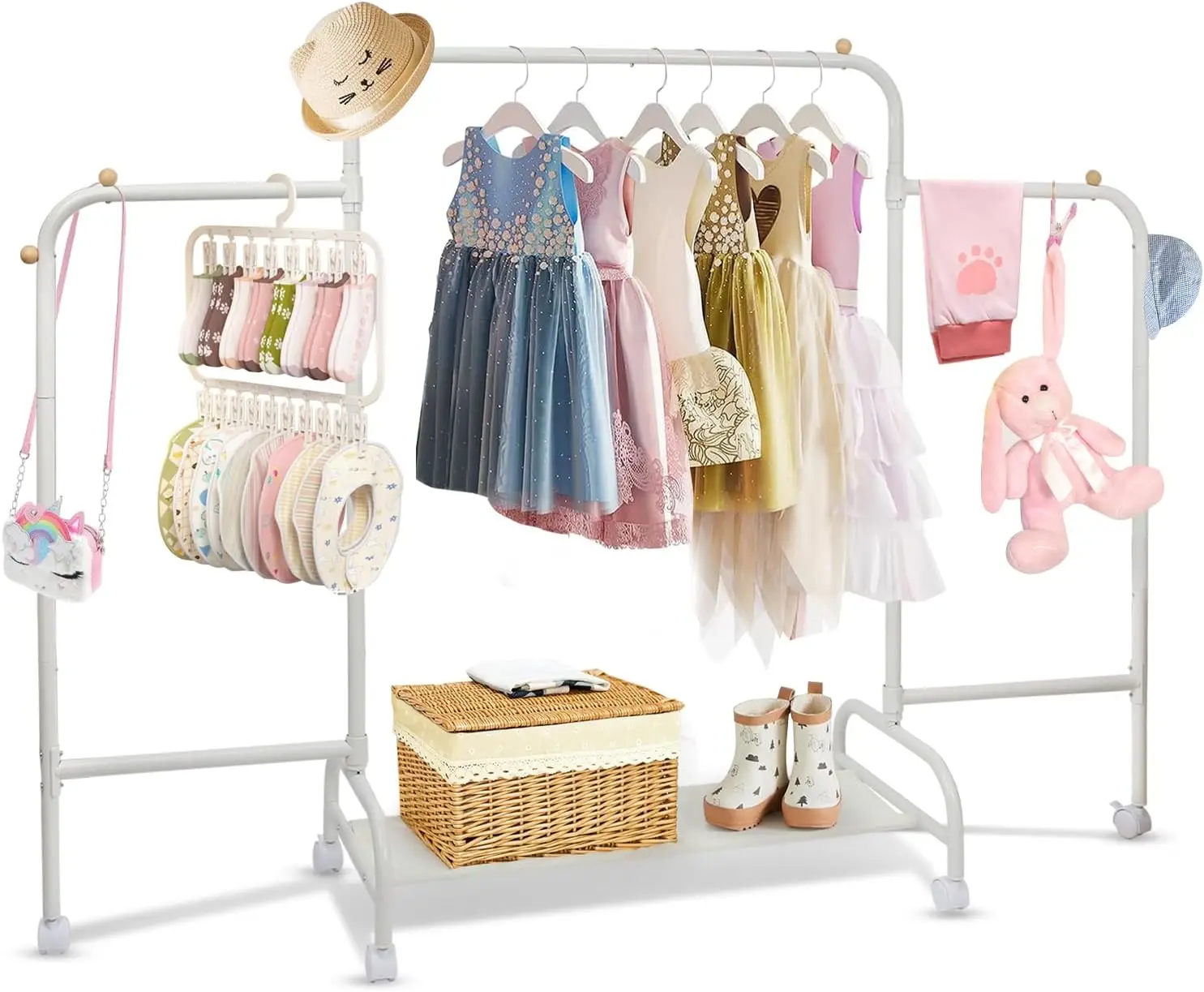 Multifunctional Kids Clothing Rack, Baby Garment Rack for Hanging Clothes with Wheels and Bottom Storage Shelf, Small Cl $58.29