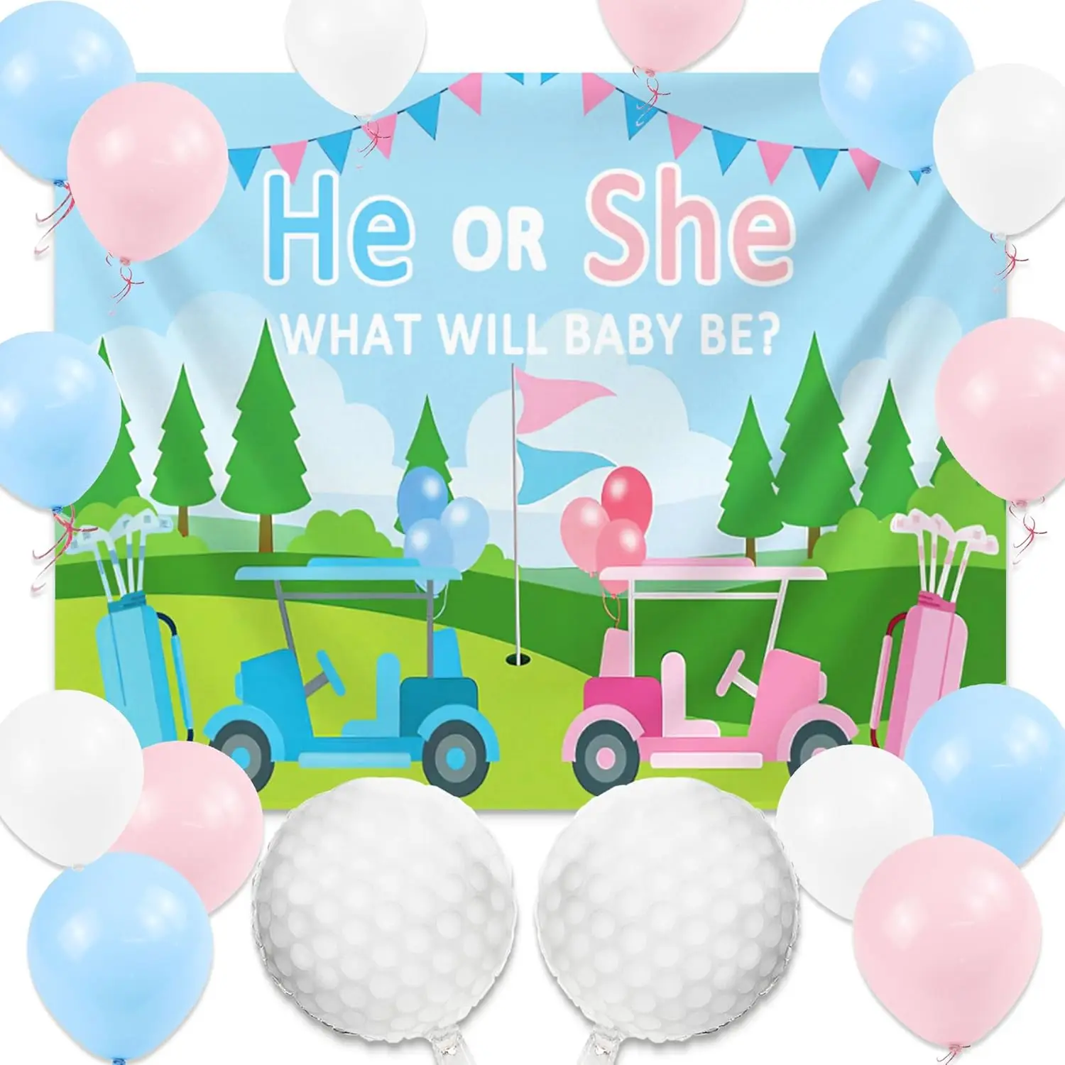 Golf Gender Reveal Party Decoration Blue Pink He Or She Banner He or She What Will Baby Be Backdrop Golf Club Balloon for $16.82