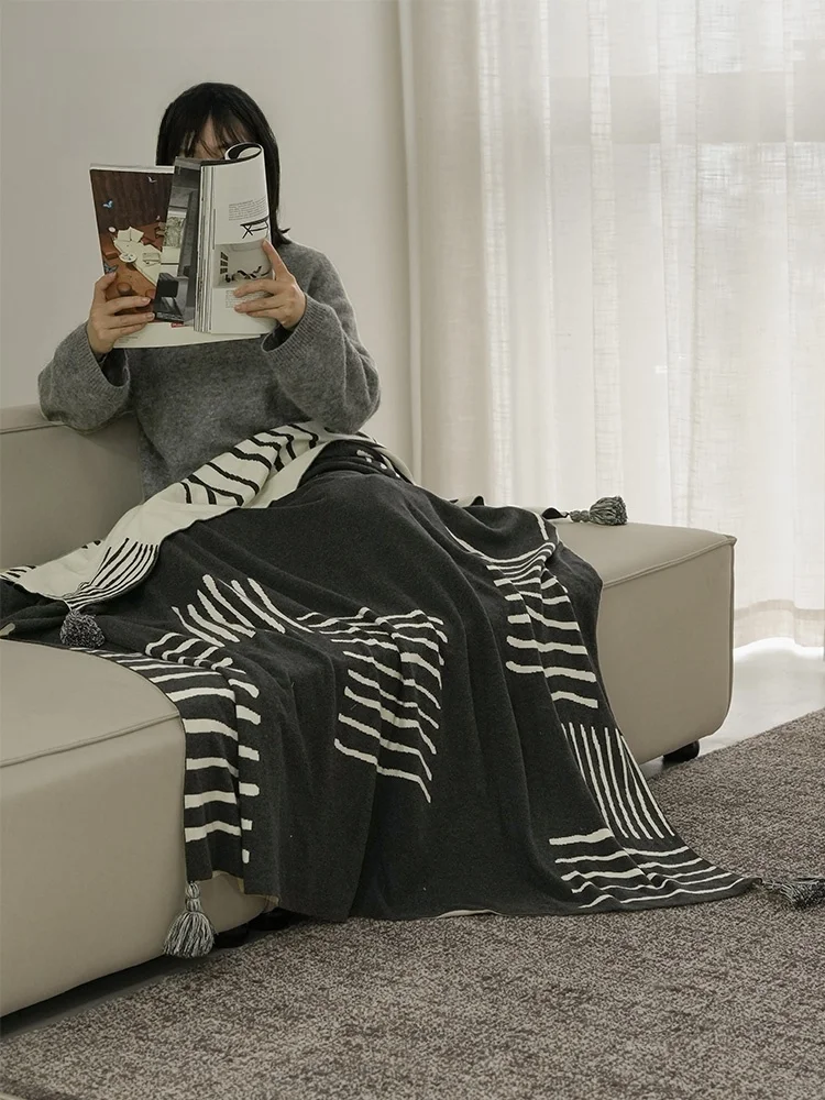 Pure Cotton Striped Sofa Blanket Atmosphere Sensation Monochrome And Black White Wabi Sabi Style Home Textile Baby And Mother $102.07