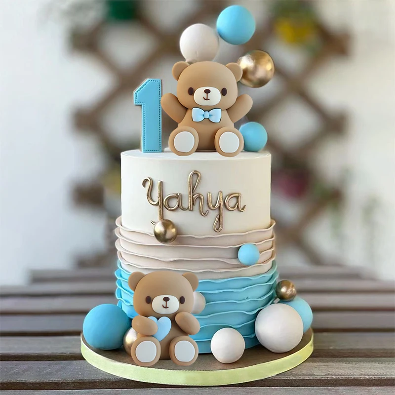 Bear Cake Decorations Balls Baby Boy Cake Topper Blue Green Bear Theme One 1st Birthday Party Baby Shower Supplies $4.81