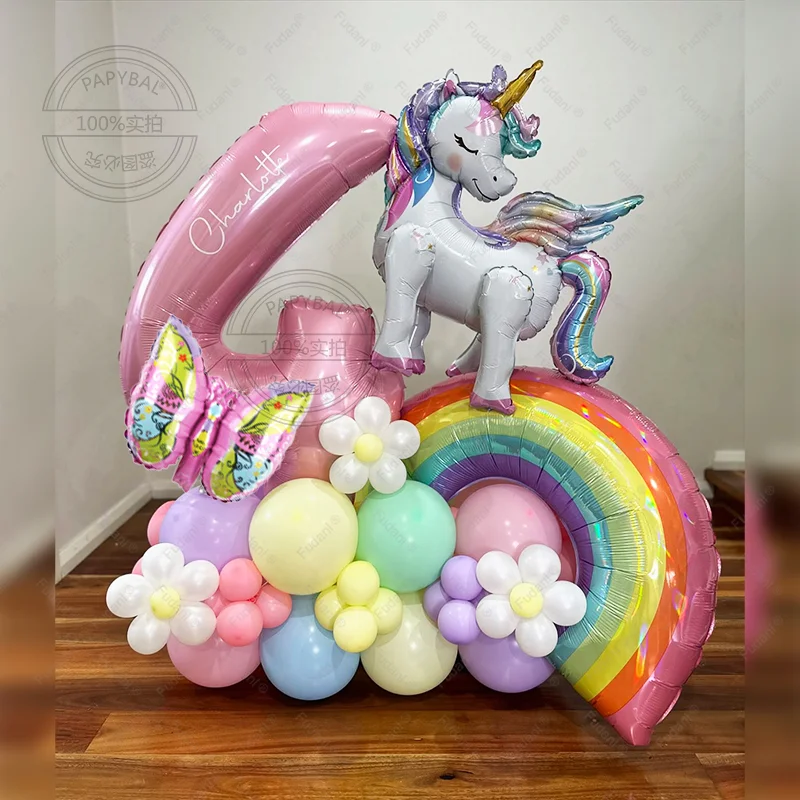 52pcs 3D Rainbow Unicorn Theme Balloon Column 32inch Pink Number 1-9th Girl Birthday Party Favors Baby Shower Decorative Balloon $13.10