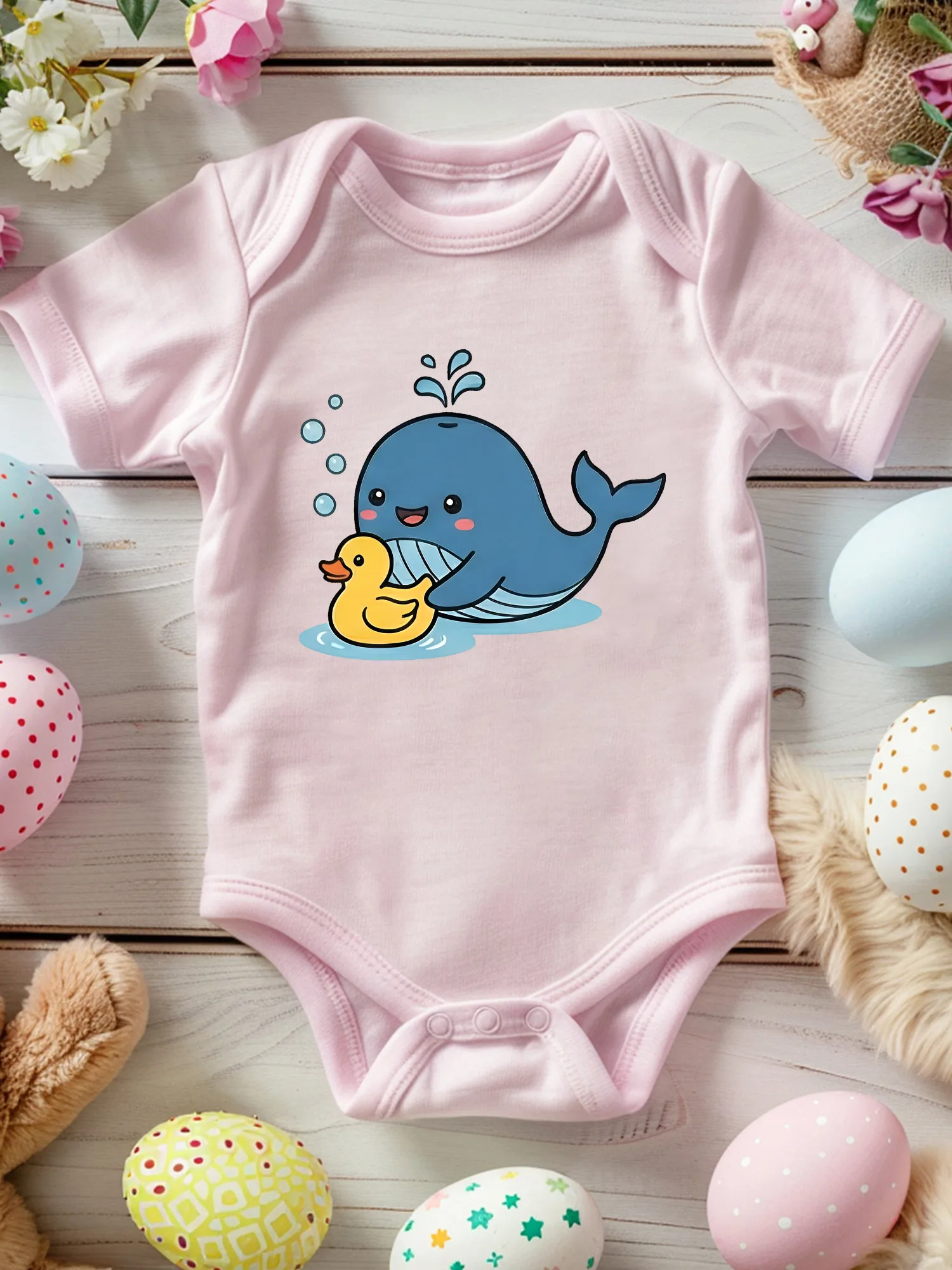 Little Duck And Whale Unisex Baby Crawling Suit, 100% Cotton Soft Onesie, All-Season Wear Pink Bodysuit 190GSM $5.71
