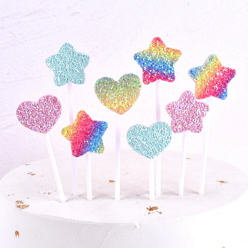 Heart Star Happy Birthday Cake Topper Colorful Star Wedding Kids Party Cake DIY Baking Cupcake Toppers Decoration Baby Shower $1.84