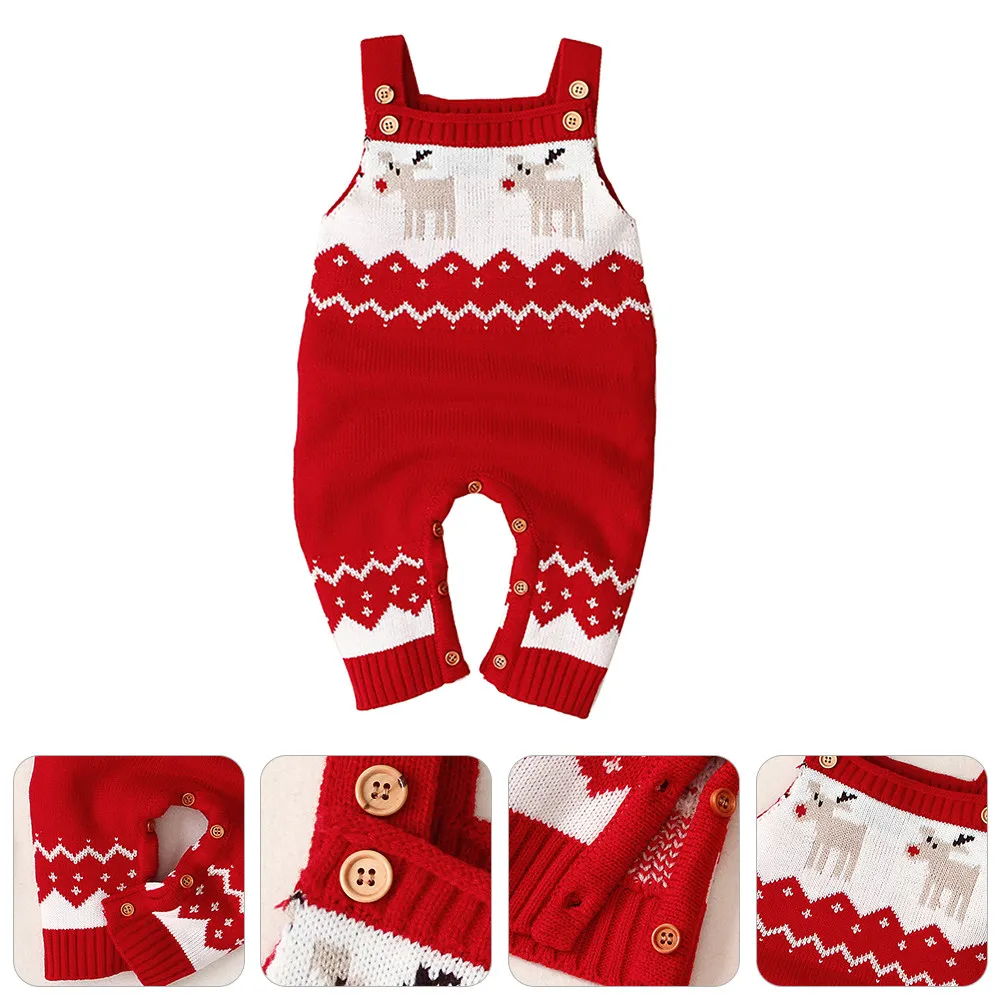 Children's Christmas Sweater Kids Rompers Acrylic Toddler Clothes Baby Knitted Outfit Xmas Themed Romper Warm Elk Pattern Daily $16.48