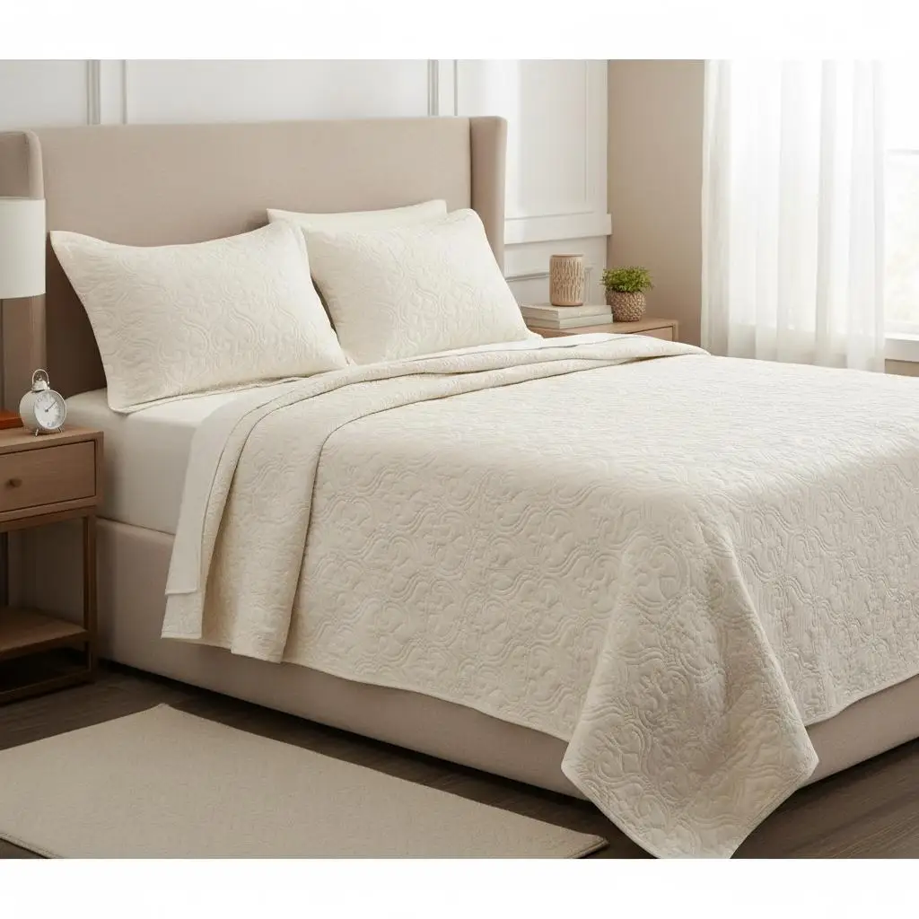 King Bedding Set 106x92in For Master Bedroom Guest Room Vacation Home, 3-Piece Cotton Reversible Coverlet Beige Quilted Bedsp $84.50
