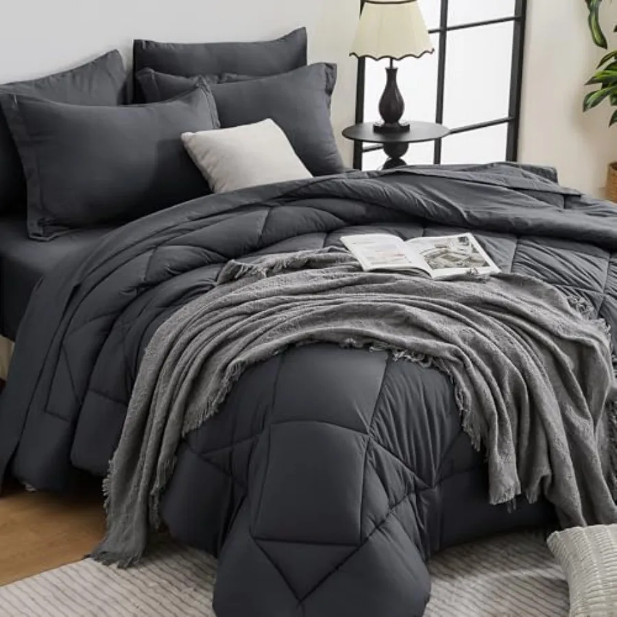 7 Pieces Comforter Set All Season Reversible Bed in a Bag Ultra Soft Bedding Set with Grey Comforter Flat Sheet Fitted Sheet Pi $57.84