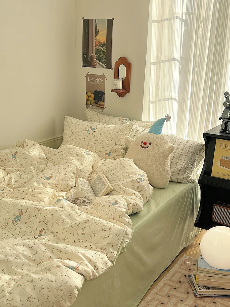 Soft Floral Korean Sle Pure Cotton Bedding Set Quilt Cover Protector Dormi Bedding Tee Piece Set Bed eet Four Piece... $77.24