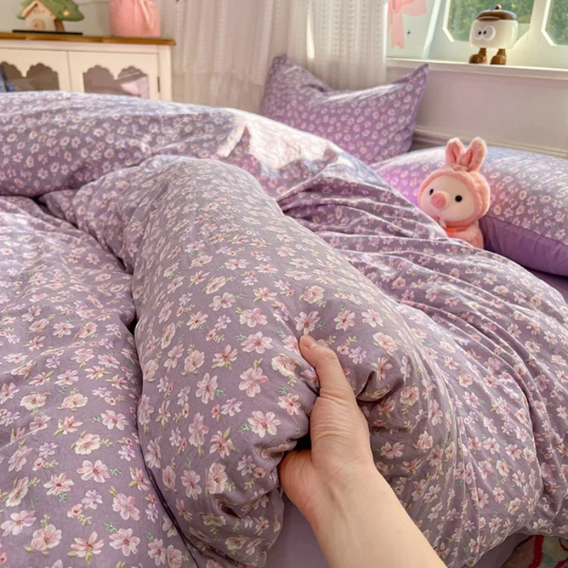2026 Spring Pastoral Bedding Set Flower Duvet Cover Set With Flat Sheet Washed Cotton Kids Adult Home Bedclothes Drop Shipping $68.96