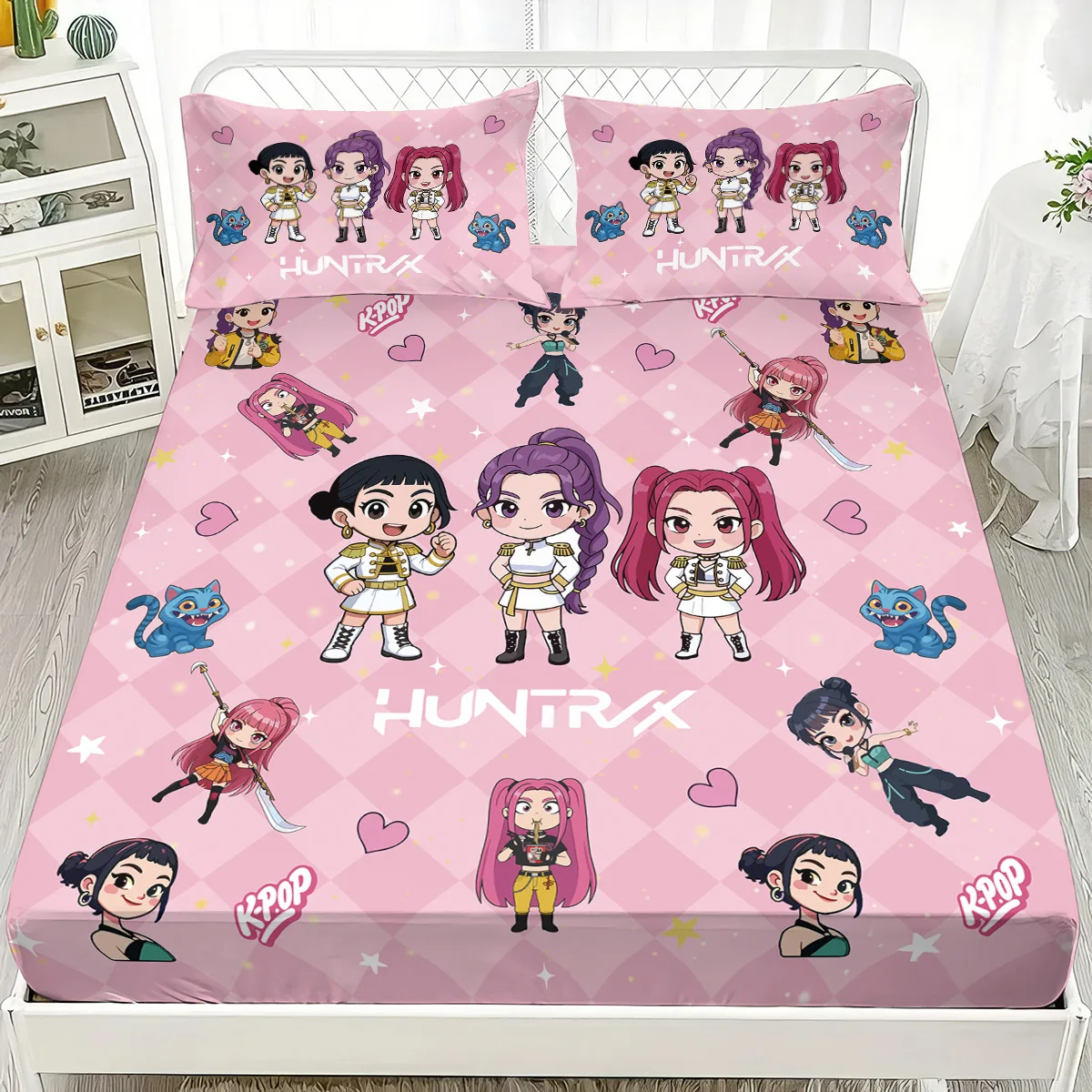 3pcsK-Pop Demon Hunters Printed coreless Fitted Sheet Set Multi Size Soft Bed Cover Bedroom Bedding Decoration Machine Washable $20.15
