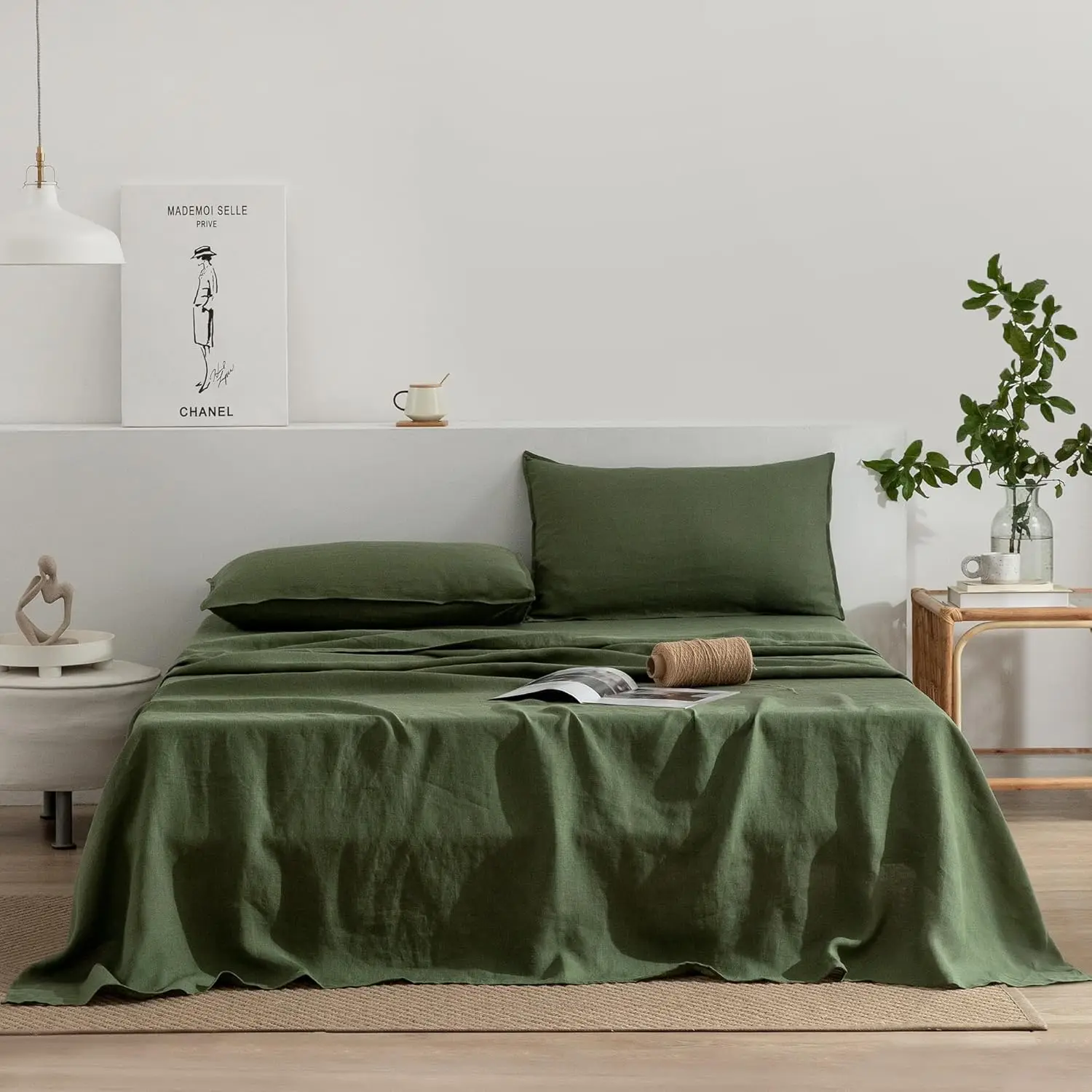 100% Stonewashed French Linen Queen Sheets Set, Deep Pocket, 4-Piece Natural Flax Bedding in Mossy Green $156.72