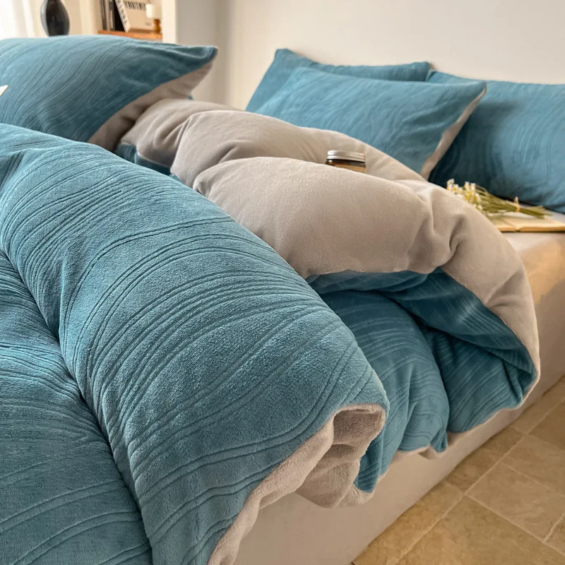 2025 new winter solid color simple four-piece set milk fleece carved quilt cover bedding thickened warm kit comfortable $82.27