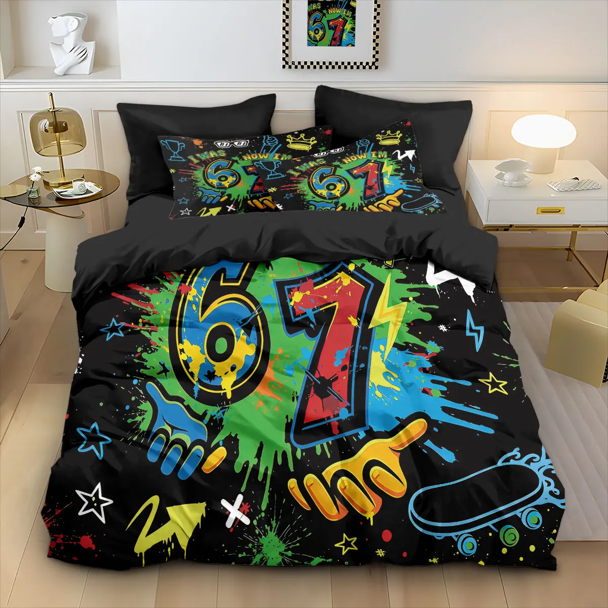 3pcs Graffiti Style Game Controller 67 Element Printed Coreless Down Duvet Cover Set, Multi Size Bedroom Bedding Decoration $31.15