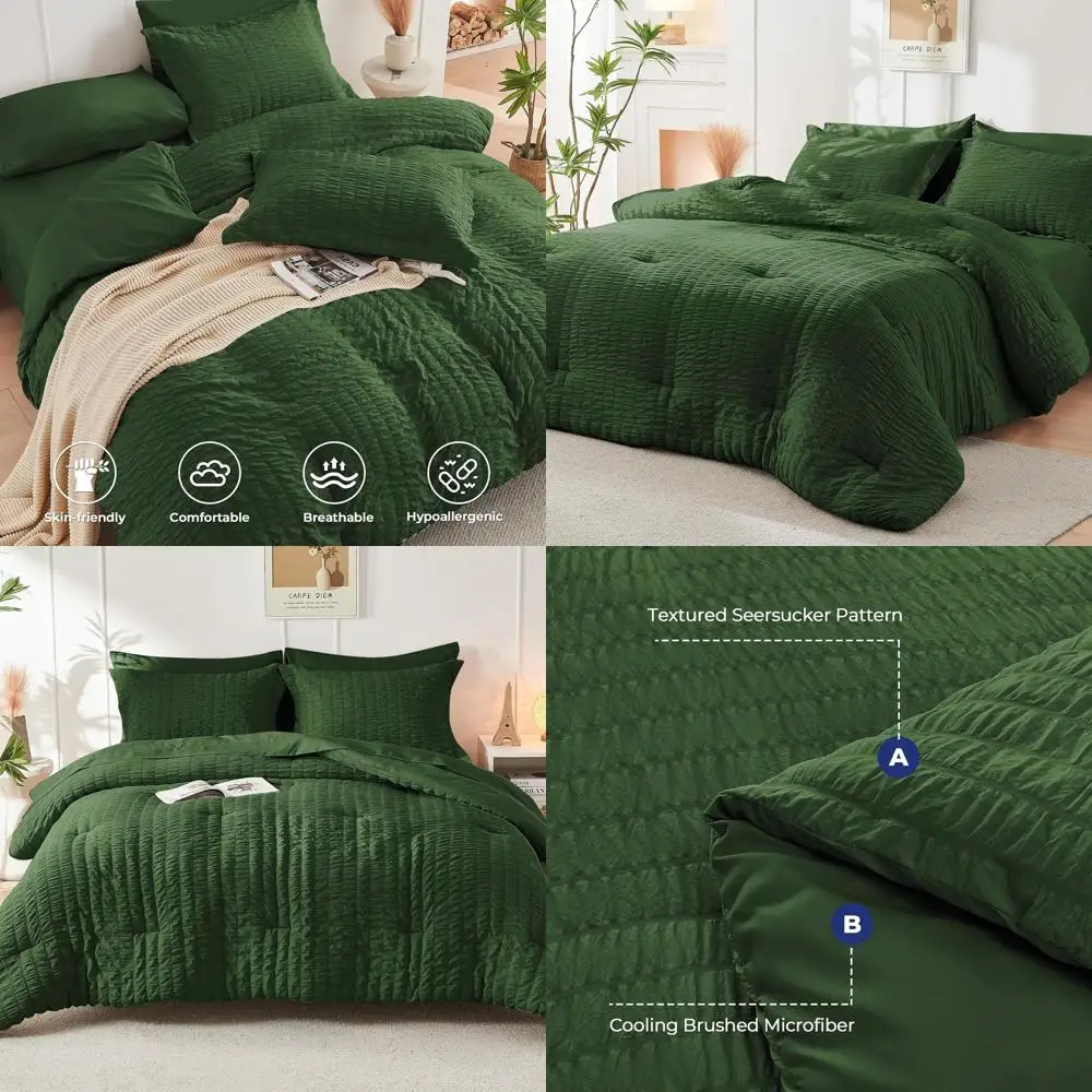 7-Piece Full Size Dark Green Seersucker Comforter Set, All-Season Luxury Bedding with Sheets, Pillowcases & Shams $65.82