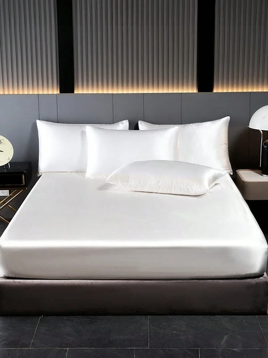 2/3pcs Satin Fitted Sheet Set Solid Color Skin-Friendly Lightweight Soft Bedding For Twin Full Queen King $21.86