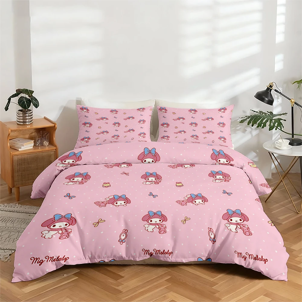 3-Piece High-Definition Digital Printed Bedding Set, Large Floral Pattern Duvet Cover Set with My Melody Cartoon Design, Includes 1 Duvet Cover + 2 Pillowcases, Suitable for Bedroom, Guest Room, Home Decoration, Polyester Fiber Duvet Cover + Pillowcases, Ultra-Soft Bedding, Thick Fabric, Suitable for All Seasons, Machine Washable $25.80