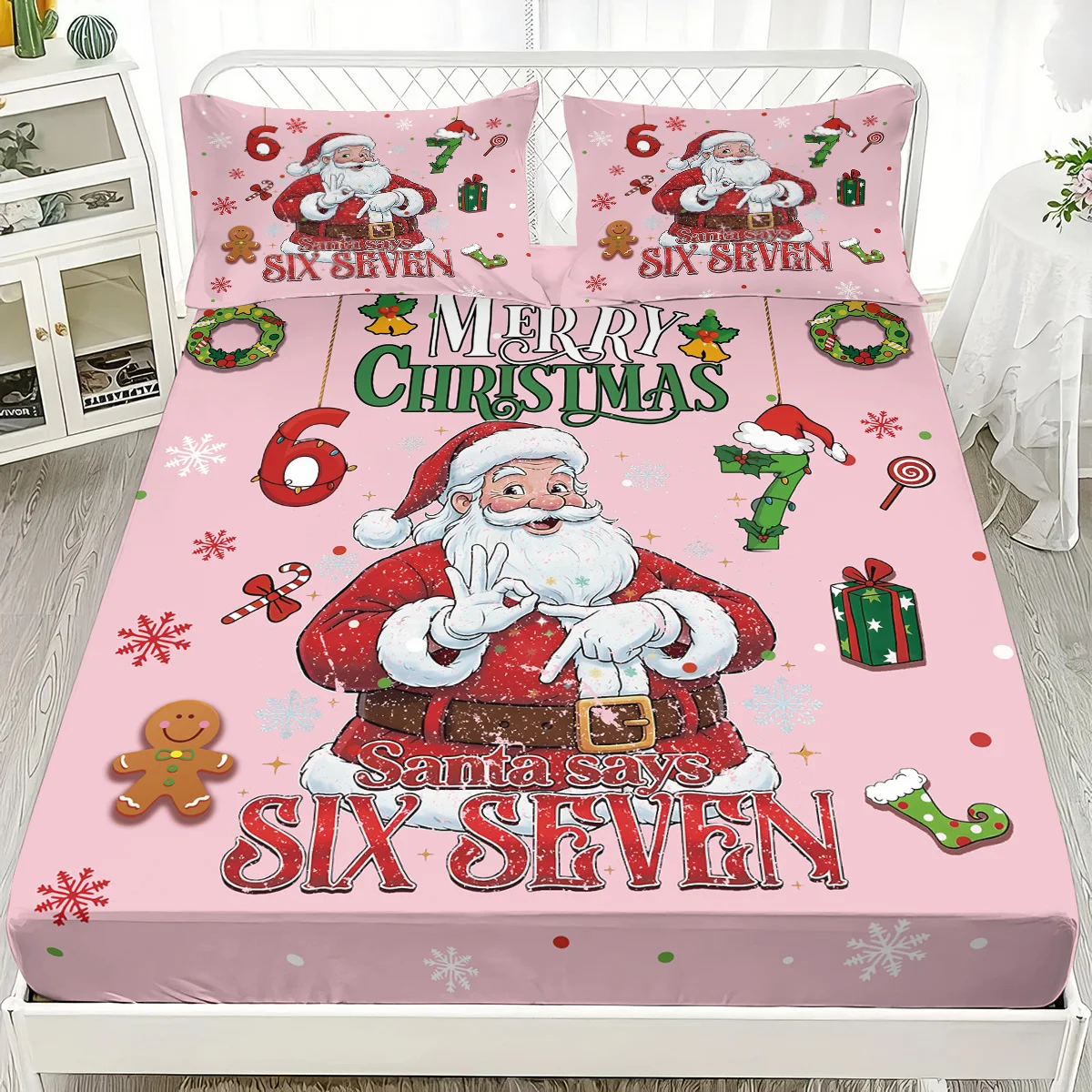 3pcs Merry Christmas Santa Claus 67 Element Print Coreless Bed Sheet Set Multi Size Bedcover Bedroom Dormitory Bedding Decoratio $14.21
