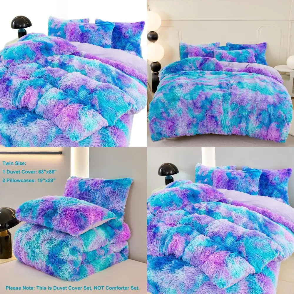 Fluffy Purple Twin Bedding Set for Girls, 3-Piece Plush Shaggy Duvet Cover, Velvet Furry Comforter Cover $40.54