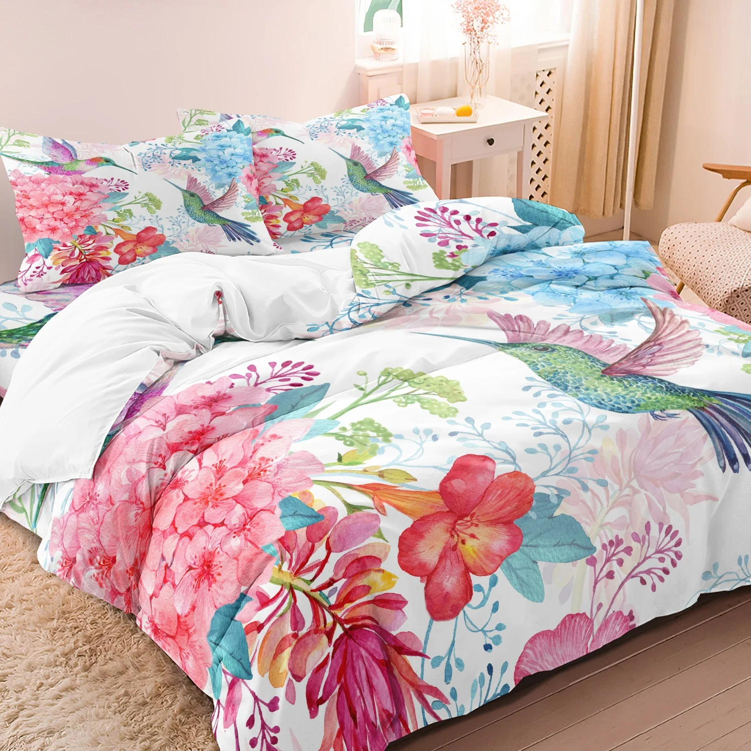 3pcs Flowers And Plants Hummingbird Bedding Sets Animal Duvet Cover Sets Kingfisher Duvet Cover Bedroom Decor Guest Room $22.56