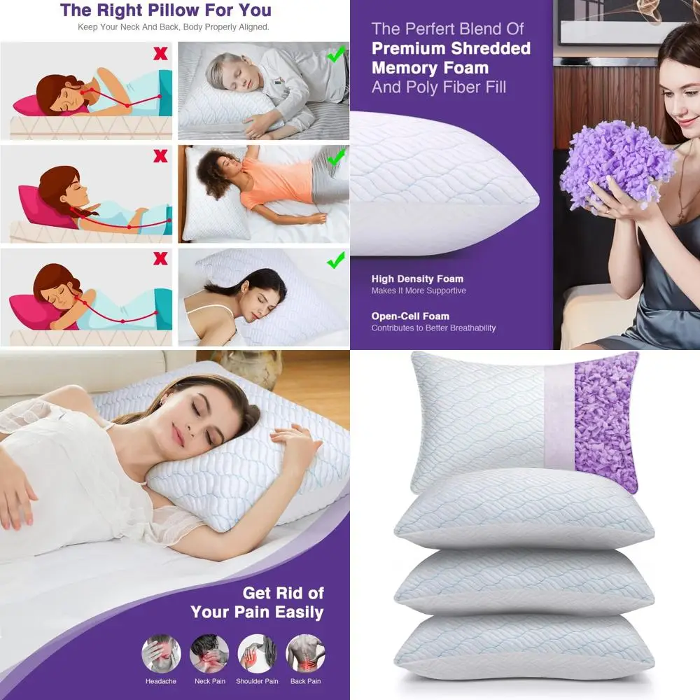 Queen Size Cooling Pillows Set, 4-Piece Shredded Memory Foam, Zippered, Adjustable Firmness, Ideal for Hot Sleepers and Side Sle $124.48
