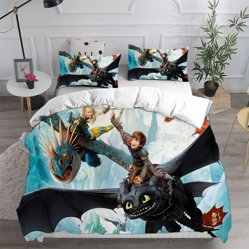 Train Your Dragons Bedding Sets 3D Exquisite Digital Duvet Cover Pillow Case 2-3 Pieces Sets Kids Adult Size $19.63