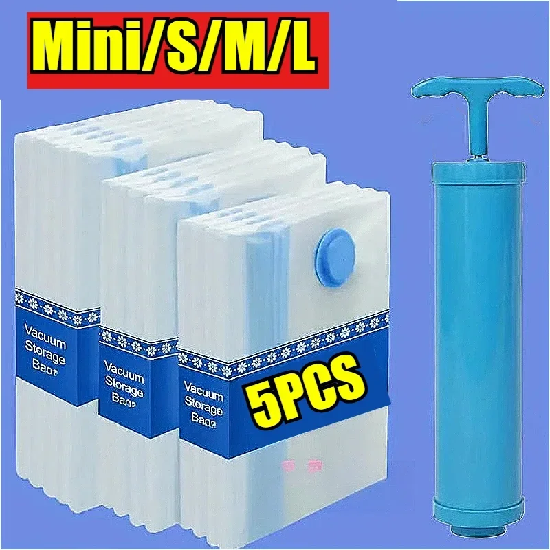 1-5pcs Vacuum Storage Bag Set with Pump Leakproof & Scratch-Resistant for Clothes Blankets Bedding Space-Saving Travel Organizer $10.87