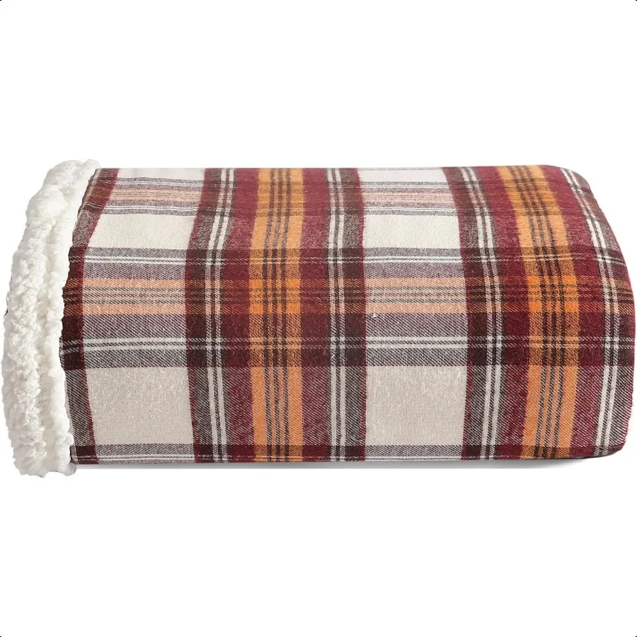 Blanket Soft Reversible Sherpa and Brushed Fleece Bedding Perfect for Lounging Dorm entials Edgewood Plaid Red $70.51