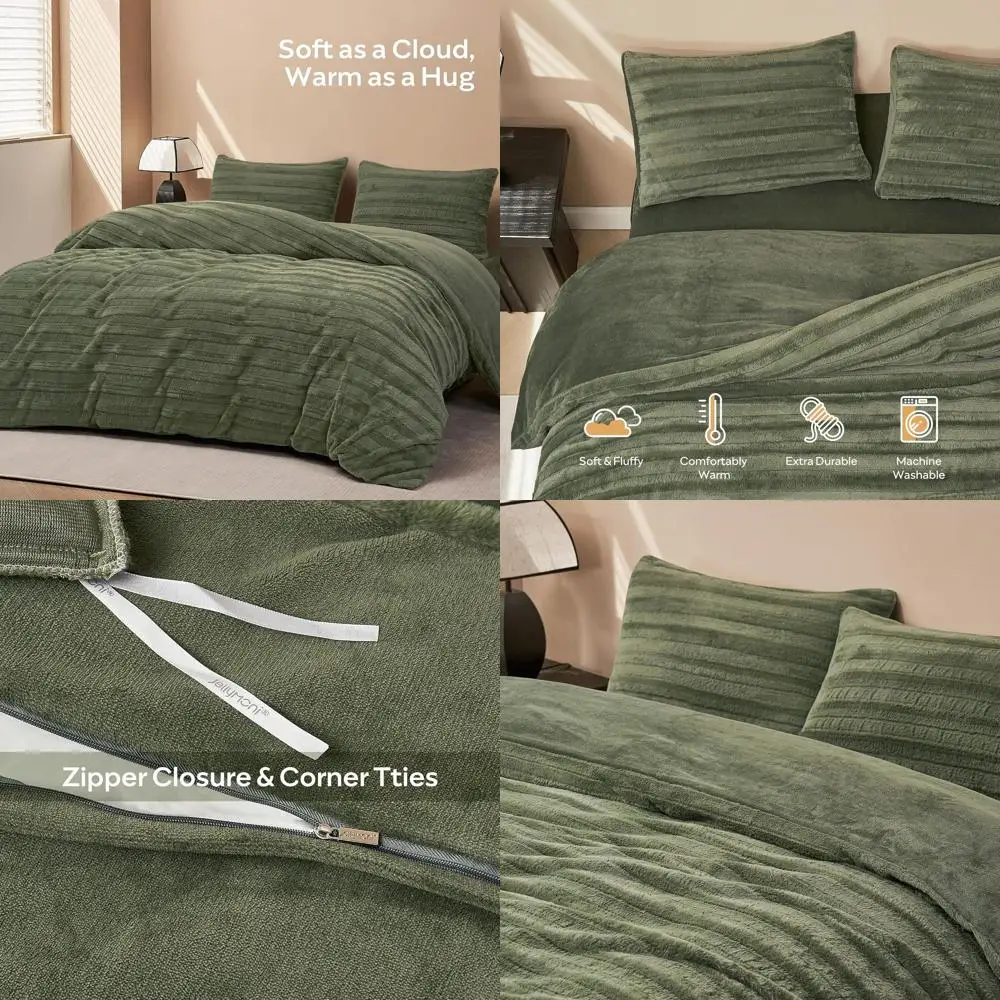 Green Striped Queen Duvet Cover Set - 3-Piece Luxury Soft Bedding with 2 Pillowcases (No Comforter Included) $51.27