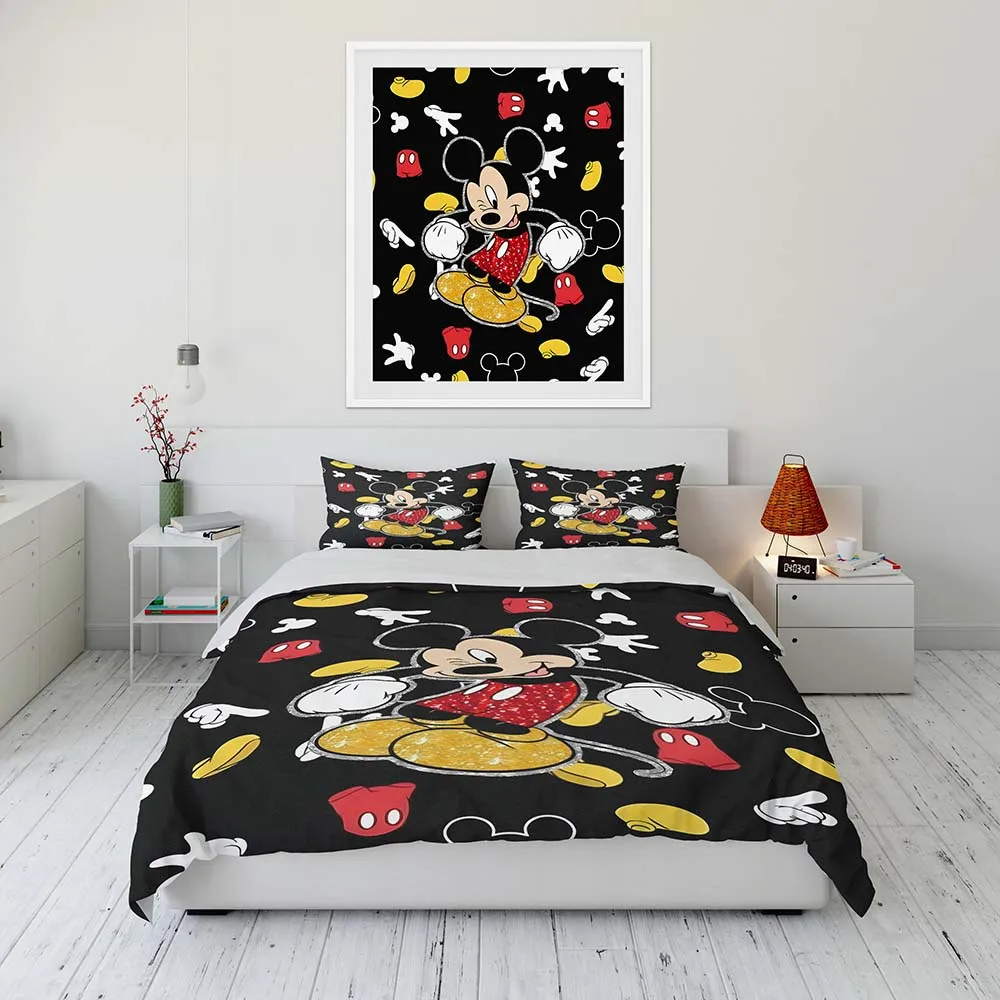 Disney Mickey-Minnie Mouse Bedding Set Kid Single Double King Size Flat Sheet Duvet Cover Pillowcase Bed Linens Bedclothes $41.54