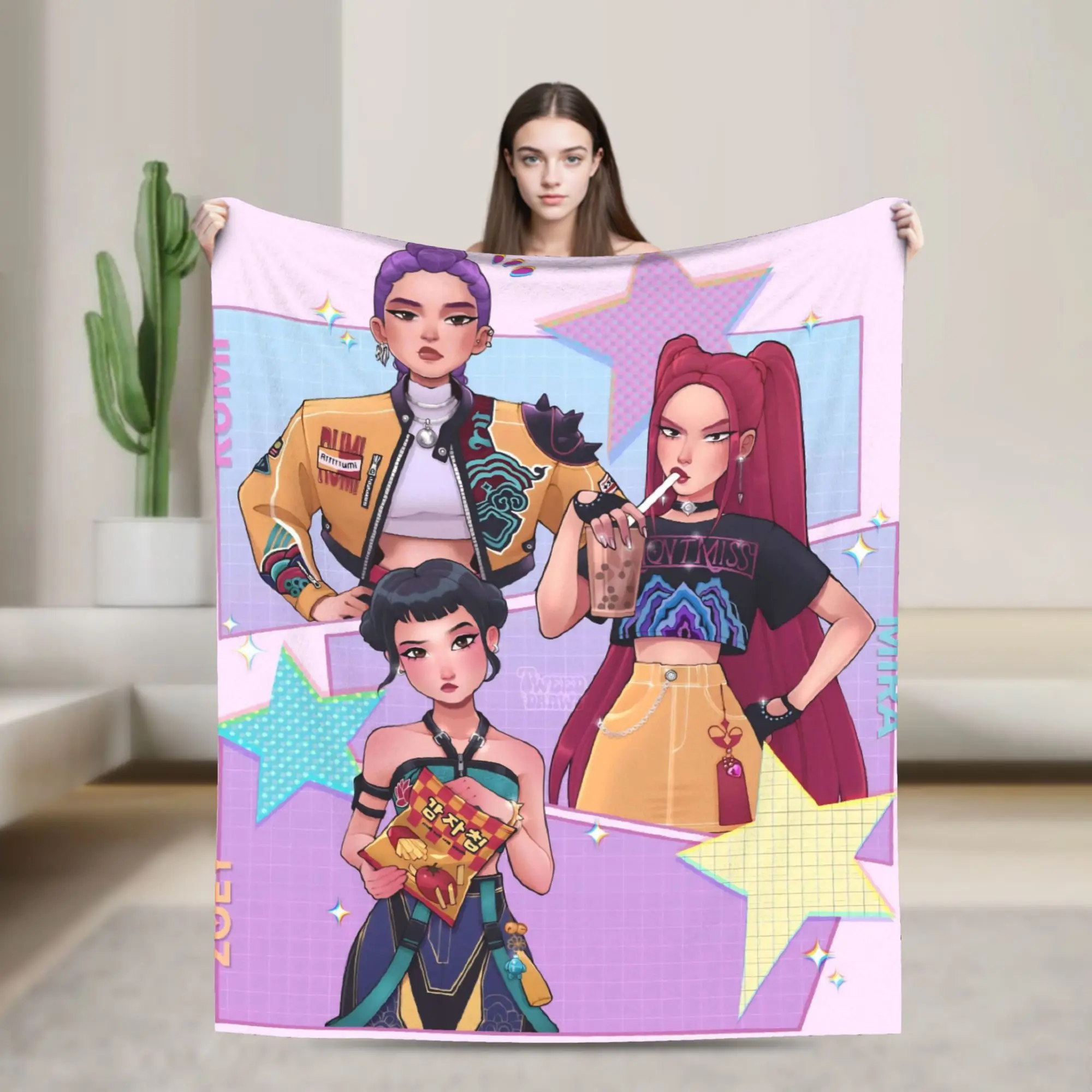 Rumi K-KPop Demons Hunters Blanket Quality Super Warm Bedding Throws Spring Girls Boys Couch Chair Sofa Bed Print Bedspread $12.07