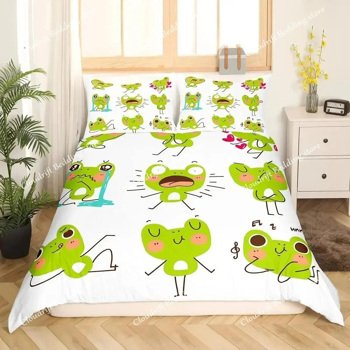 Cartoon Frog Duvet Cover Set Light Green Cartoon Frogs Cute Dragonfly Animal Bedding Set for Boy Twin Size Polyester Quilt Cover $48.23