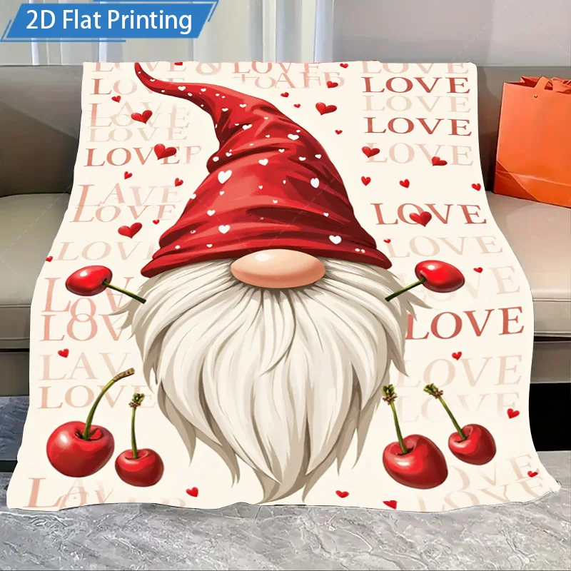 1pc Flannel Blanket Cute Gnome with Cherries Love Print Fleece Blanket Cozy Valentine Decor for Home and Bedding $15.28