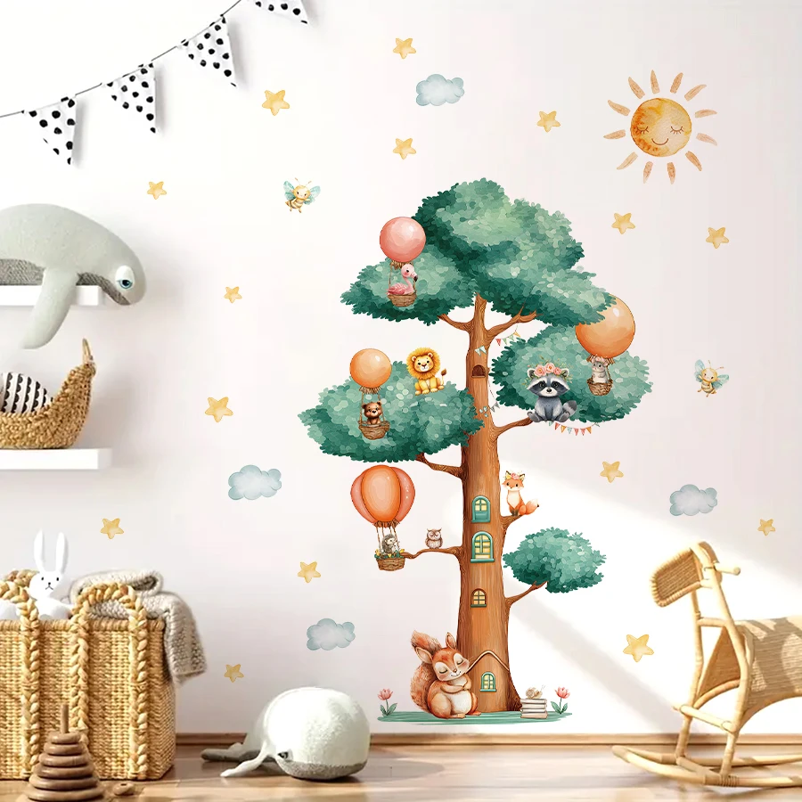 Whimsical Cartoon Tree & Animals Wall Decals - Removable Vinyl Stickers For Kids Room, Nursery & Playful Forest Theme Decor $6.18